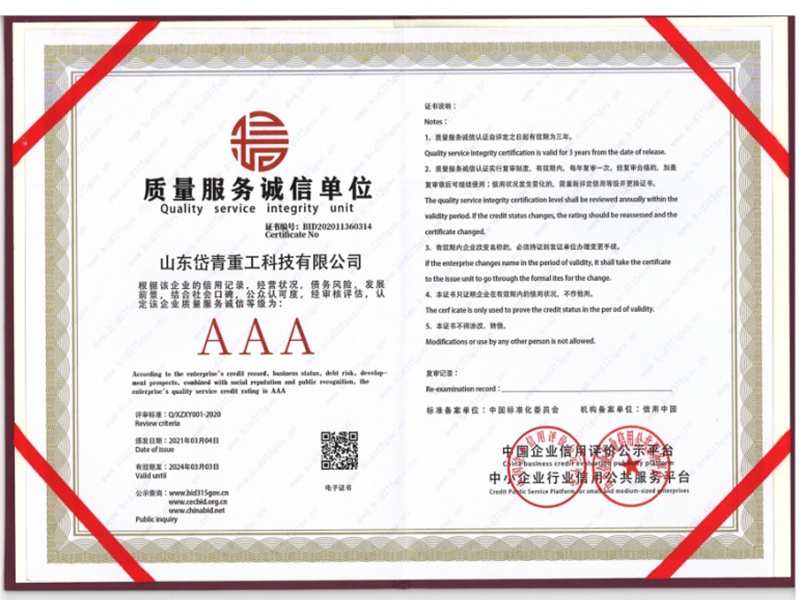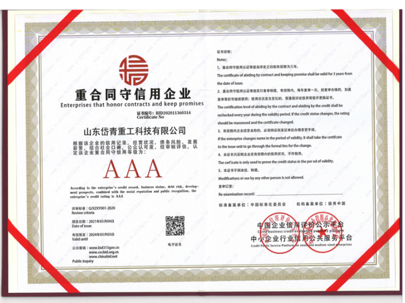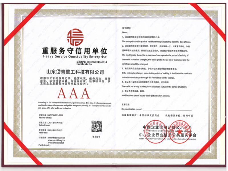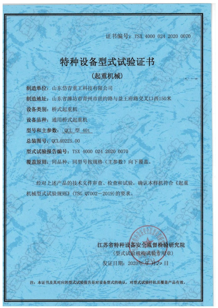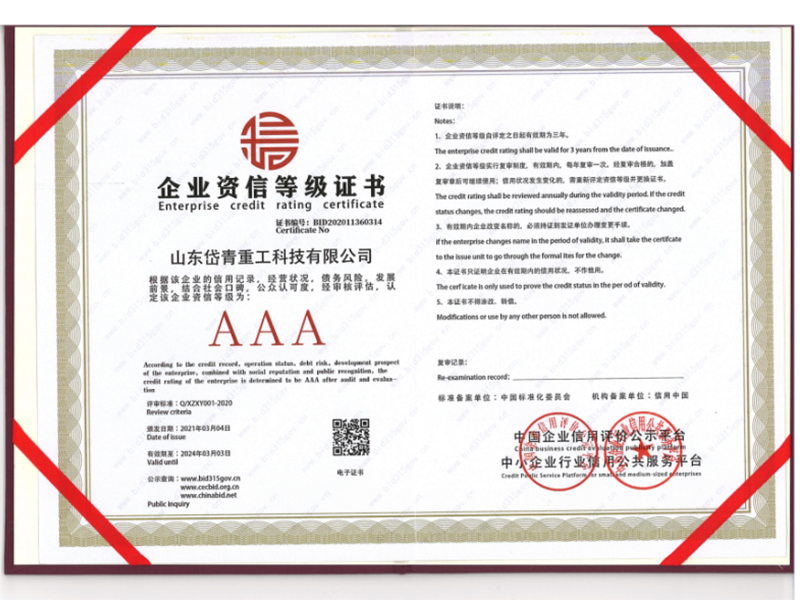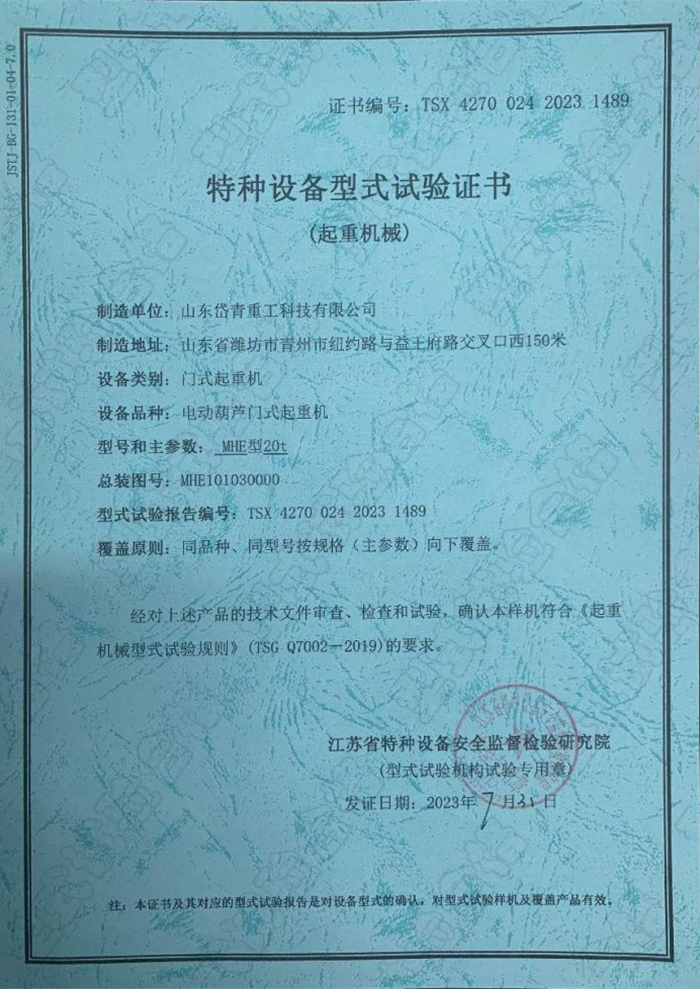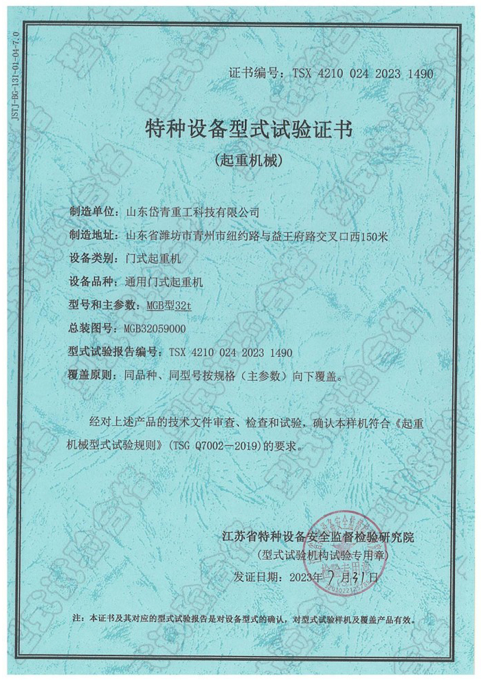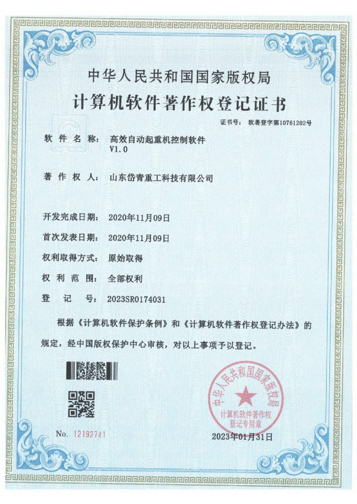 Компания получила квалификацию уровня А на производство, монтаж, техническое обслуживание и ремонт кранов, выданную Главным управлением по надзору за качеством, инспекции и карантину, а также прошла сертификацию системы качества ISO9001 и системы менеджмента охраны труда и техники безопасности. Компания обладает комплексной системой обеспечения качества, строгими процедурами управления, мощными производственными и вспомогательными возможностями, а также передовыми методами испытаний.
